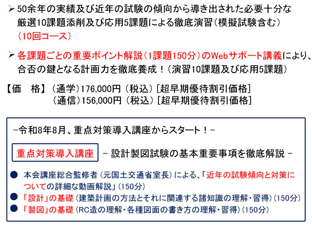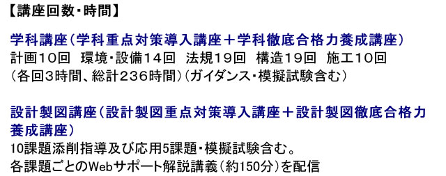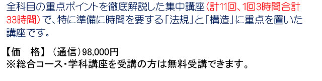 全科目の重点ポイントを徹底解説した特に準備に時間を要する「法規」と「構造」に重点を置いた講座!