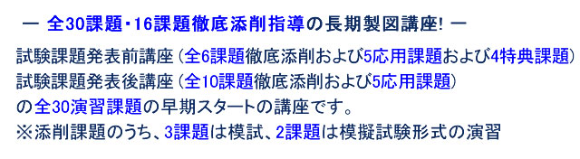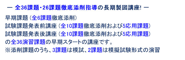 - 早期から合格の基となる製図力と鍵となる建築計画力の「基礎」を着実に効果的に養成するのが確実な合格への道! -