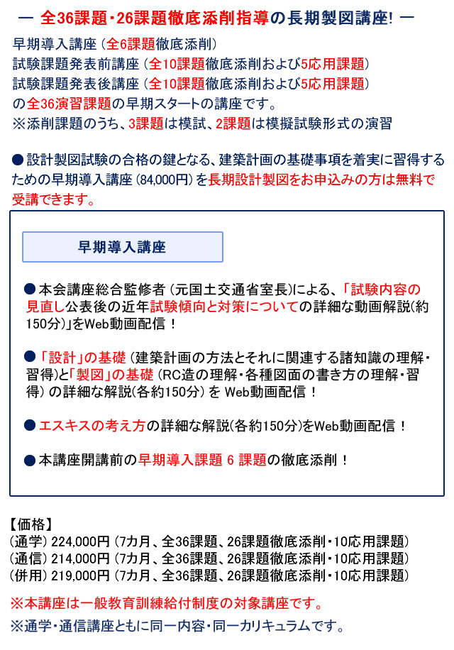 - 早期から建築計画の基礎力を養成するのが確実な合格への道! -