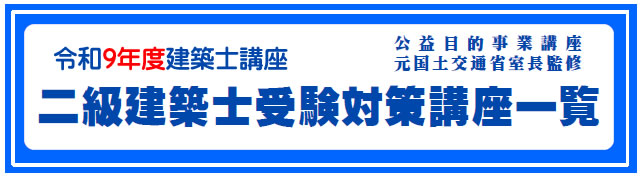 公益目的事業・元国土交通省室長監修 本会の建築士受験対策講座は、中央省庁・県庁や我が国を代表する企業の研修に採用され、公立大学の社会人公開受験対策講座にも採用された実績を有する等、高い信頼性を得ております。