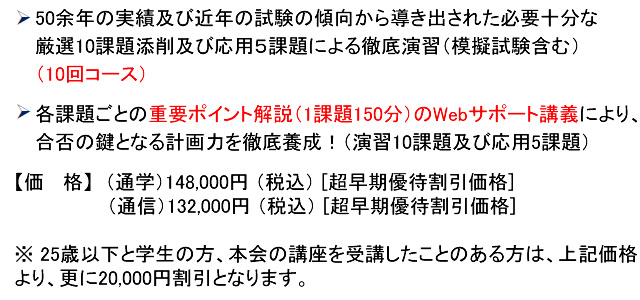 ※ 25歳以下と学生の方、本会の講座を受講したことのある方は、上記価格より、更に20,000円割引となります。